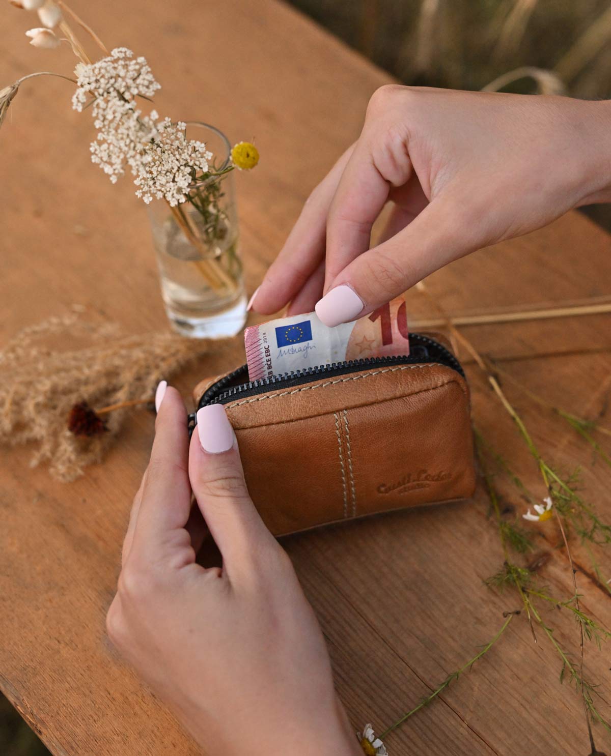 “Butler” is a textbook example of a key pouch. It is a practical and handy storage option for your key ring, protecting the other things in your bag from being scratched and damaged by your keys. It’s also perfect for storing some spare change if you don’t want to take your wallet with you, thanks to its extra zipped pocket.