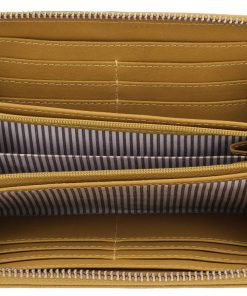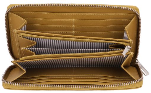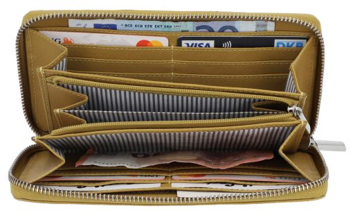 Inside, „Cara“ features 5 interior compartments – so you have space for all your small and large bills and coins.The two exterior compartments offer space for 10 cards. Additionally, there is a coin compartment in the middle that you can close with a zipper. Besides the coin compartment on both sides, you finally have space for your bills. Additionally, there is a zipper compartment at the back for a little souvenir or two. A large zipper perfectly protects your belongings, ensuring nothing can fall out.”Cara” – a comprehensive package when it comes to wallets!