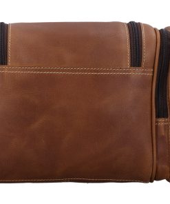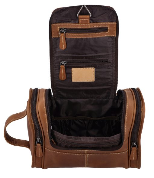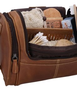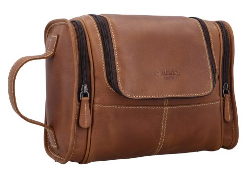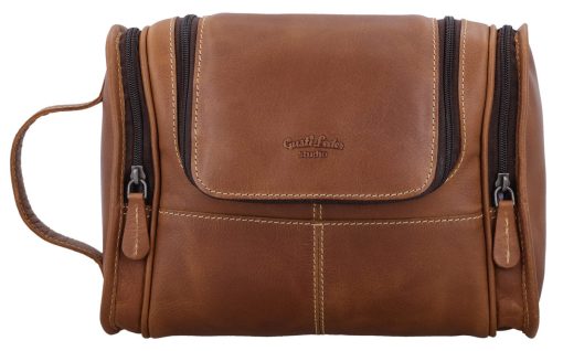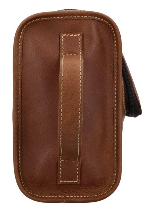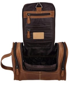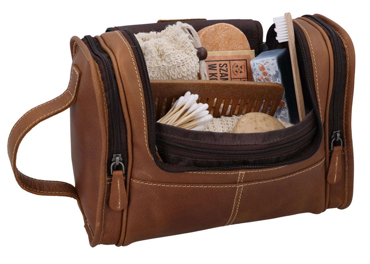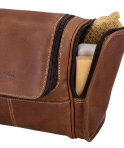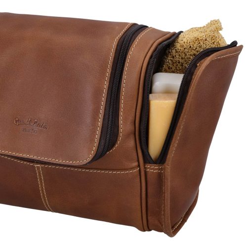 Practical and elegant – the “Chester” toiletry bag made of brown leather