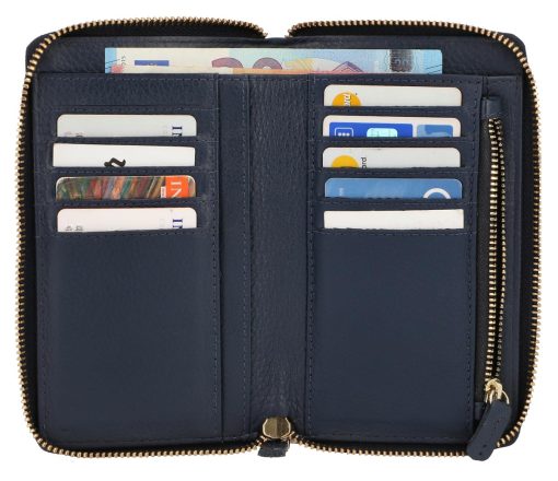 Our purse has been specifically designed for women who want a minimalist purse. This compact design fits in any bag or pocket easily. We’ve used striking blue leather to create this purse so it oozes timeless elegance and can be worn with any outfit on any occasion.