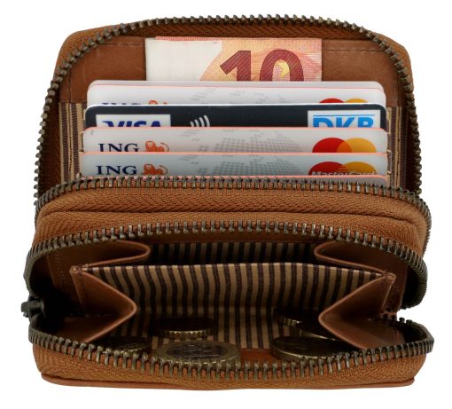 “Dillon” is split into 2 sections inside. There’s room for up to 6 cards on one side. Keep your cash and change safe in the other side. This high-quality tanned cowhide leather wallet will win you over with its compact size, stability, and soft feel. “Dillon’s” design is completed by a matching zip. So you won’t lose anything when you’re on the go.