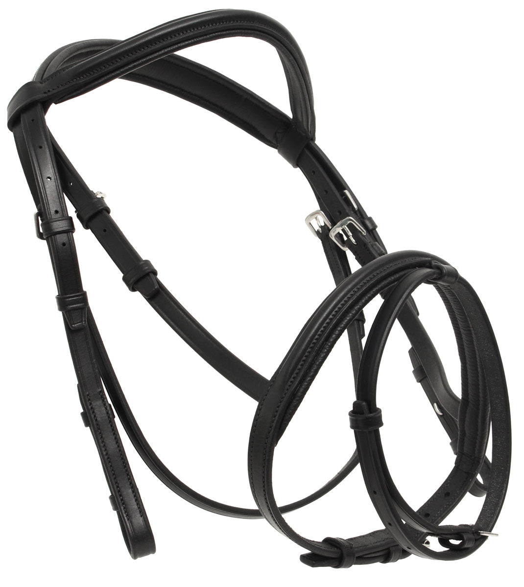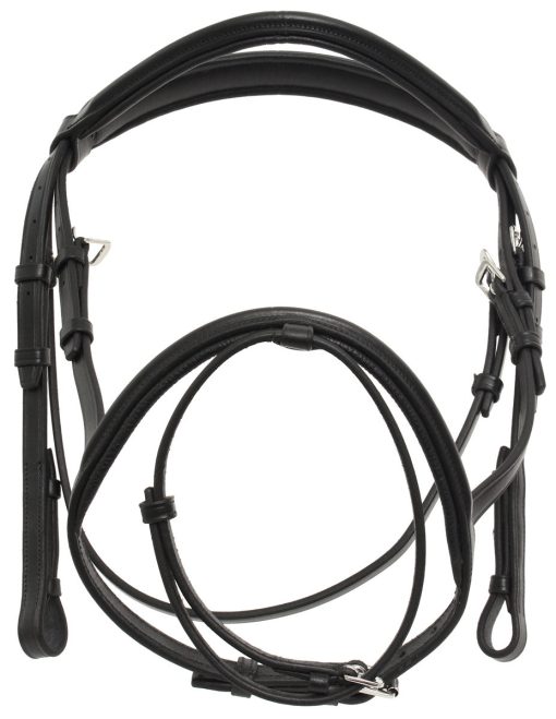 Our beautifully crafted “Galvin” black leather horse bridle cavesson is sure to withstand the test of time. It fits well and comfortably (or so our horses have told us) on your horse and looks elegant on all coat colours.