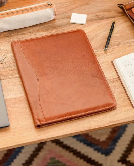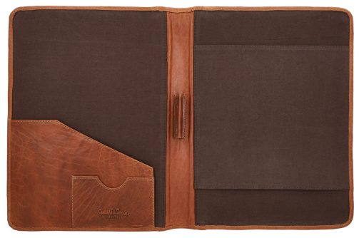 This high-quality processed buffalo leather document organiser has plenty of space for all of your important documents. “Jeppe” is super spacious; he has two compartments inside, as well as a couple of card slots. You can keep your documents, notes, a small tablet, and your favourite pen safe in here, thanks to the pen loop. There’s space on one side for your A4 notepad, as well as a leaning pad in case you need to make any quick notes. “Jeppe’s” design is finished off by the beautiful stitching. Everything is perfectly protected and organised so that you can see what’s inside.