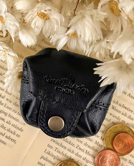 A petite purse is super handy at large public events. “Linus” is the perfect companion for any occasion – from folk-music festivals to seeing your favourite band live. It doesn’t get any smaller than this! This handy and practical coin purse keeps your coins safe in your pocket, helping you avoid losing your money all over the floor. This petite coin purse is made from high-quality finished leather and is the perfect companion for any event. Keep your coins secure using the metal press button – so you can dance the night away and not have to worry about losing your cash!