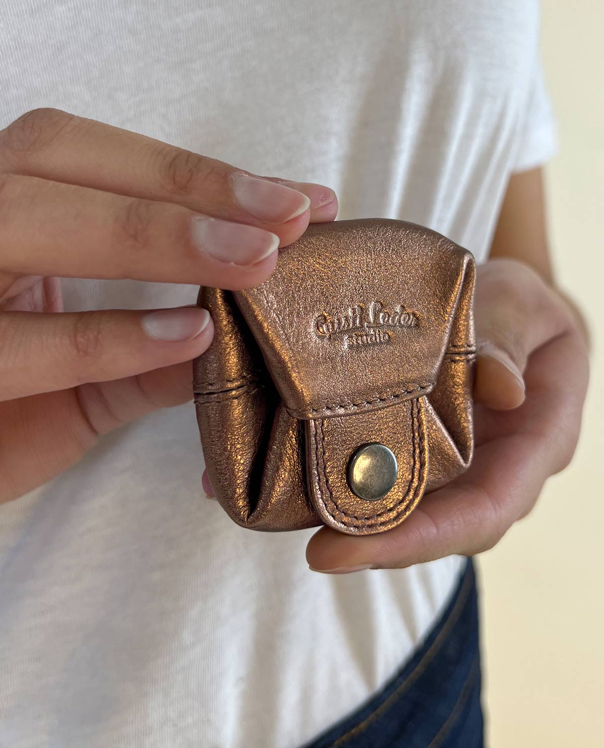 A petite purse is super handy at large public events. “Linus” is the perfect companion for any occasion—from folk-music festivals to seeing your favourite band live. It doesn’t get any smaller than this! This handy and practical coin purse keeps your coins safe in your pocket, helping you avoid losing your money all over the floor. This petite coin purse is made from high-quality finished leather and is the perfect companion for any event. Keep your coins safe using the metal press button—so you can dance the night away and not have to worry about losing your cash!