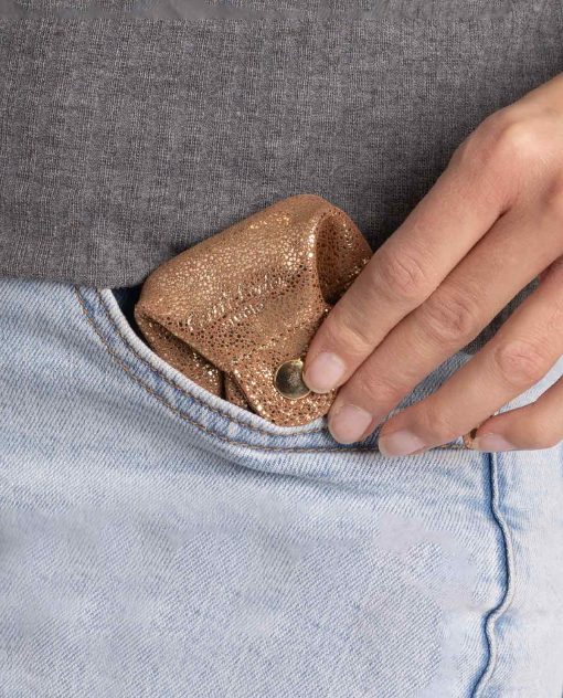 A petite purse is super handy at large public events. “Linus” is the perfect companion for any occasion – from folk-music festivals to seeing your favourite band live. It doesn’t get any smaller than this! This handy and practical coin purse keeps your coins safe in your pocket, helping you avoid losing your money all over the floor. This petite coin purse is made from high-quality leather and is the perfect companion for any event. Keep your coins secure using the metal press button – so you can dance the night away and not have to worry about losing your cash!