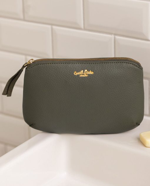 “Louise” is made of sturdy high-quality leather, which gives this bag the stability it needs and comes in a sleek and stylish design. The gold zip has a small tassel which adds an elegant touch to this bag. The lining contrasts with the outside of the bag, it is spacious and organised, so you have more than enough space for all of your beauty products, bathroom essentials, pens, and more.