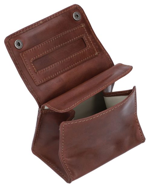 “Lutz” helps you keep your tobacco safe and secure. The large inner compartment is lined with natural rubber and is the perfect place to keep your tobacco fresh. You’ll find an extra pocket on the back for your filters and you can store your rolling papers in the small pocket on the folding lid. No more rummaging around! Your filters are kept safe by a sturdy zip. Use the press button to secure your tobacco when you’re on the go. “Lutz” comes in three different colours, so there’s something for every taste. The robust cowhide leather gives this tobacco pouch a cool vintage look. Spice up your cigarettes with “Lutz”.