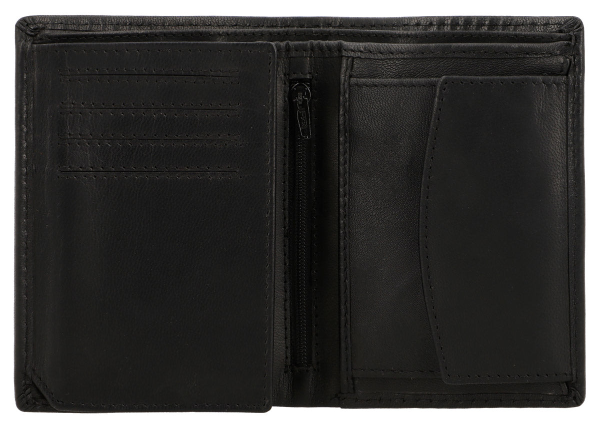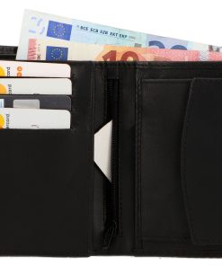 Inside, this wallet has a spacious, well-thought-out layout with two pockets for notes, a separate coin pocket secured with a press button, and 8 card slots for at least 8 cards. The integrated fold-out pocket folds out to reveal a large viewing window, where you can keep your I.D., driving license, or even photos of loved ones safe. This wallet also has a great additional feature; the small, zipped compartment, where you can keep your valuables safe, and the two small side pockets behind the coin and card pockets.