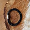 Made from robust buffalo leather, you can easily close “Marja” with a magnetic clasp. In addition, this bracelet is available in solid and various colored bands. Perfect for cool beach looks right at home! Allergy note: This product contains no nickel! Whether as a gift or a casual accessory for yourself – with “Marja” you are always right!