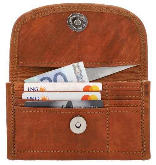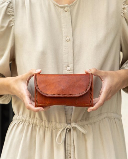 Made from naturally tanned goatskin leather, “Ranya” can easily withstand everyday wear and tear. This wallet offers space for your cards and cash, all securely stored and fastened with a magnetic button. The leather gives “Ranya” that charming vintage look that’s so popular right now! Handy and compact, the wallet fits easily into trouser or jacket pockets without feeling bulky. Whether you’re on a date or grabbing a drink with friends, this wallet lets you pay in style wherever you go.