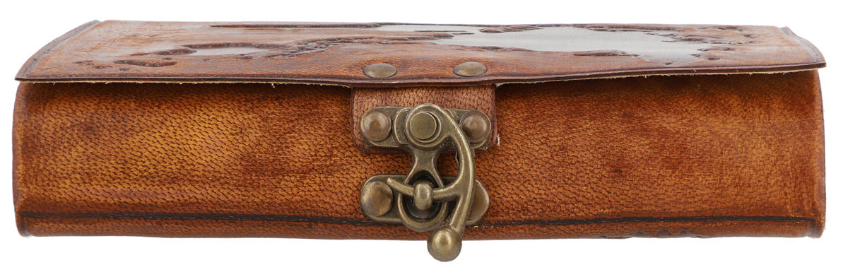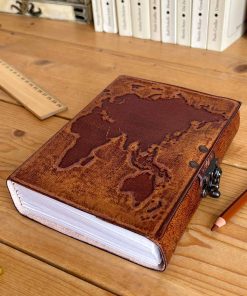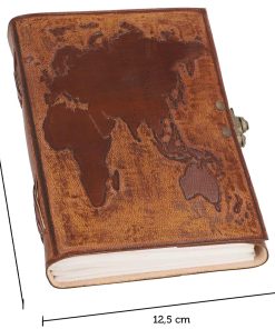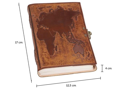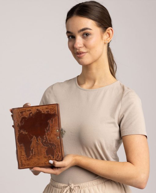 “Ronda” really is something special. No matter if you’re looking for somewhere to jot down your thoughts, travel plans, or keep your photos, recipes, and notes safe, this notebook can do it all! The world map on the cover has an air of wanderlust and is sure to win you over with its pleasant feel, thanks to the high-quality buffalo leather used to create it. The soft feel of the suede and the imperfect edges bring a vintage touch to “Ronda” and will invite you to use her all the time. The retro locking hook completes “Ronda’s” look and gives her an unforgettable charm. You won’t want to put her down! Our Gusti Leather nature products might have some slight variations in colour due to the natural manufacturing processes used to create them.