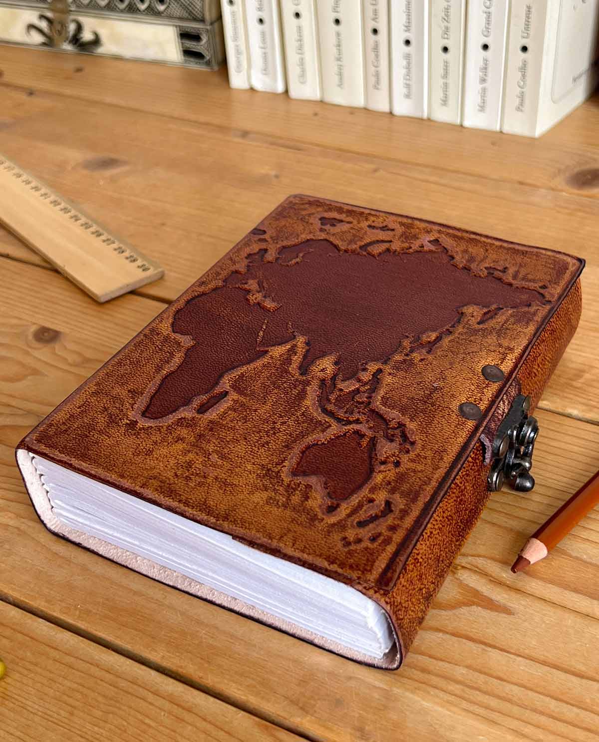 No matter if you’re documenting your next trip around the world, creating a colourful bullet journal, or writing a diary, “Ronda” will become your new leather companion! Organise your thoughts with this stylish B6 world-map notebook. Once you’ve got your hands on her, you’ll never want to let her go!