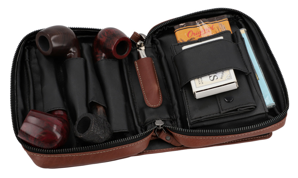 “Rupert” is sure to catch your eye! At first glance, he looks like a discreet yet chic pouch for your tobacco pipes. But you won’t believe your eyes when you see what’s inside! The beautiful high-quality processed cowhide leather used to create this pipe case is elegant and soft to the touch. If you like to take different tobaccos with you on the go, then our spacious “Rupert” is just what you need! No matter if you roll your cigarettes or smoke a pipe, all of your wishes will be fulfilled.