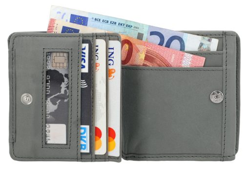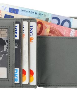 You’ll be ready for anything with this practical yet elegant wallet in your pocket. “Samuel” is slim but don’t let him deceive you, he’s super spacious inside. At first glance, there are 5 card slots inside for your credit cards and I.D. But that’s not all… “Samuel” opens up to reveal even more space for your cards. You can access the large coin pocket easily. So you won’t have to faff around at the checkout anymore. There’s space for your cash as well. “Samuel” is secured using a press button. He’s made of elegant grey cowhide leather that’s soft yet sturdy. You’ll always have your essentials with you in “Samuel”.
