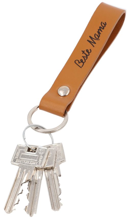 The elegant keychain “Shelton” is available in many different colors – your favorite color is guaranteed to be among them. You can attach as many keys and carabiners as you like to the key ring. The engraving gives the keychain a personal touch, so your friend not only gets a practical but also a unique gift. An ideal accessory for any handbag or backpack interior!