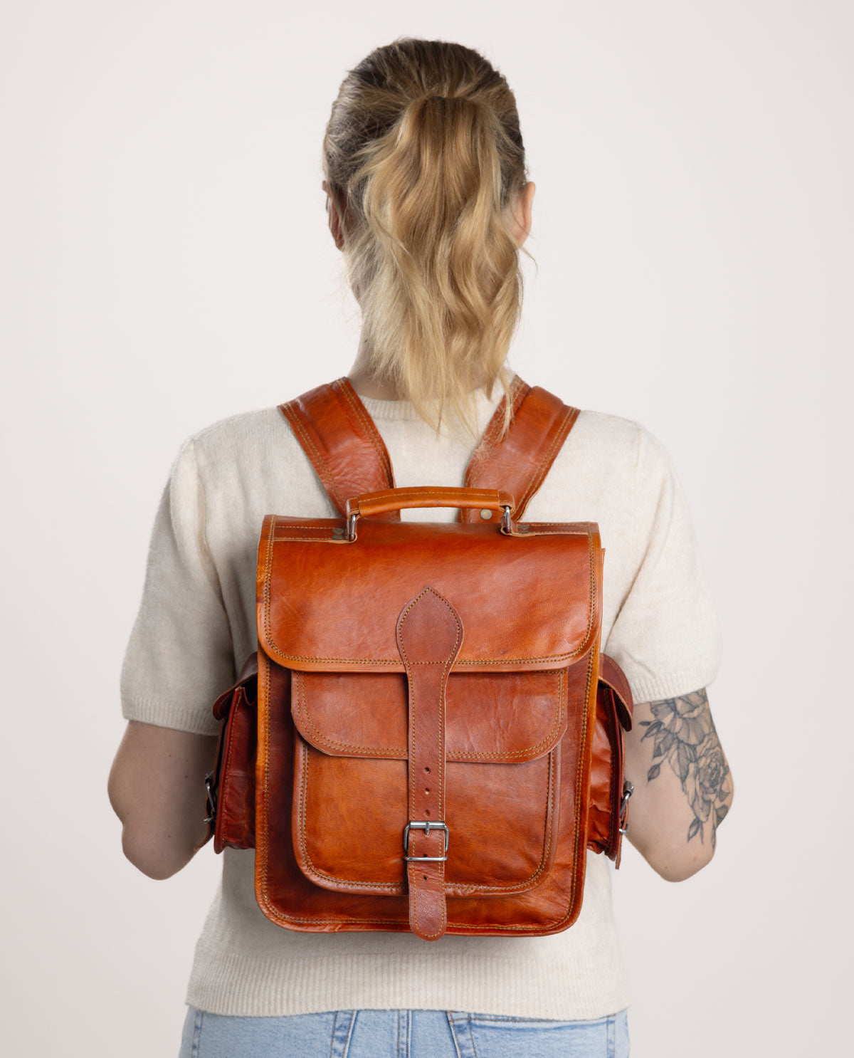 This backpack is sure to turn heads thanks to its chic shape and trendy vintage design. Use the buckle to secure your belongings inside the bag and keep them safe from sticky fingers. Adjust the backpack to sit comfortably on your back using the adjustable, padded straps. The best thing is “Eleanor” is taking a powerful stand against fast fashion. We’ve used high-quality vegetable-tanned goatskin leather to craft this backpack that comes from 100% free-range animals. It’s chic, sustainable, and responsible—it embodies all things slow fashion. You’ll be able to use and enjoy “Eleanor” for years to come.