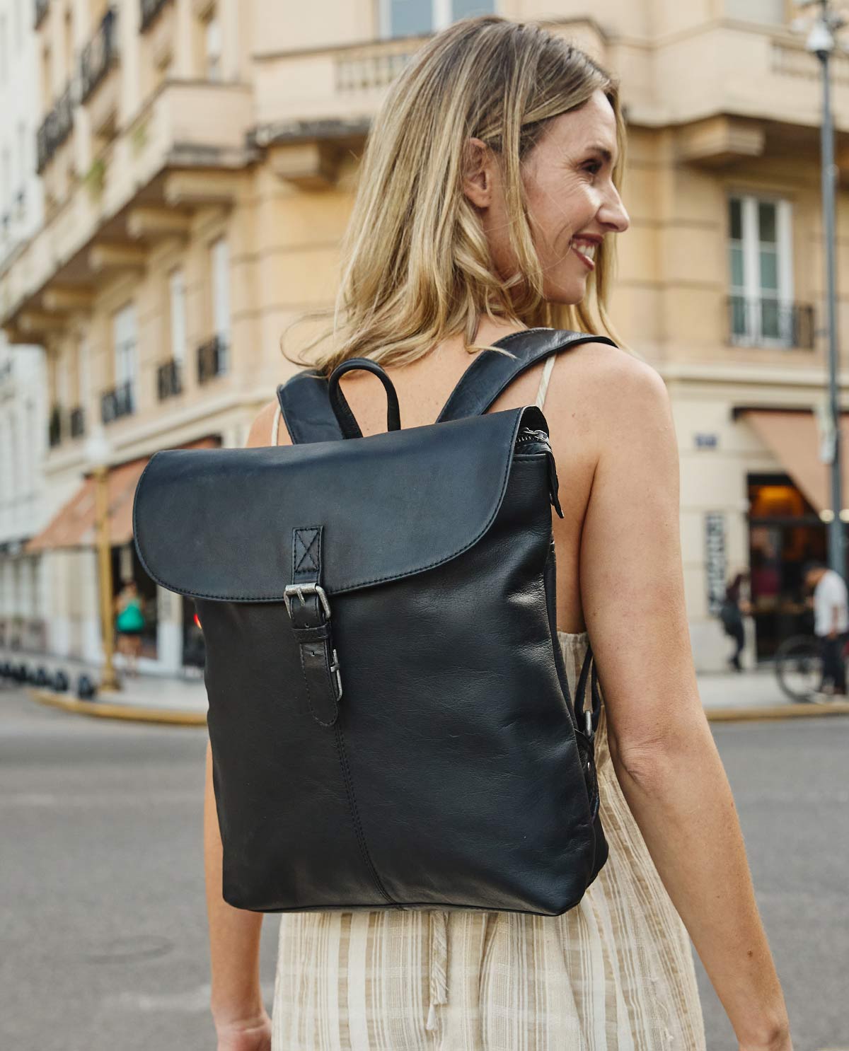 “Kieran” won’t just charm you with its high-quality full-grain leather look, but with his ingenious design too. This 100% genuine leather backpack has more than enough space for all of your essentials and is super comfortable to wear, thanks to its wide full-grain leather straps. The main compartment has a double fastening system; the long zip and thorn-buckle-style snap lock make sure everything stays safe and secure. The extra zipped pocket on the back of the bag provides you with space to keep your valuables hidden and safe from sticky fingers. Add a timeless touch to your wardrobe with “Kieran”.