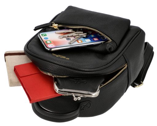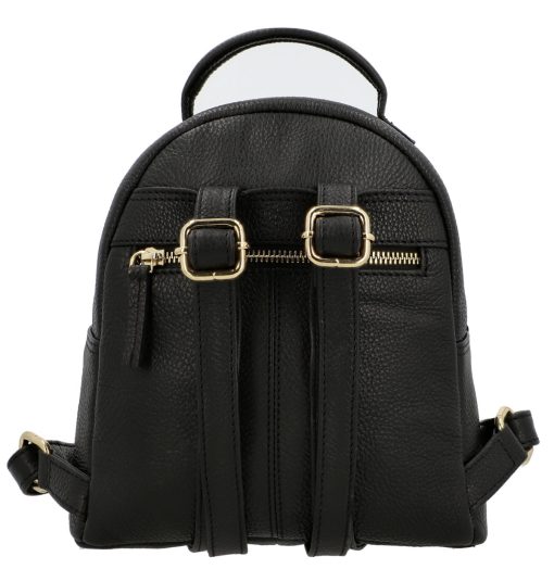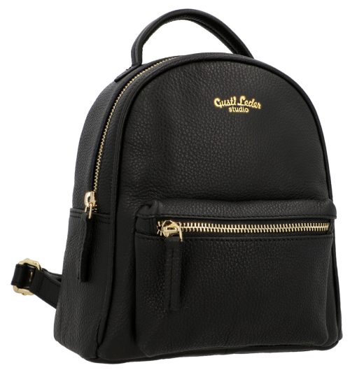 “Wendy” is subtle and sophisticated, the perfect bag for your daily routine. The gold detailing is expertly placed on the rich black cowhide leather, so this backpack seamlessly transitions from daywear to evening wear. “Wendy’s” 5-litre capacity means you have more than enough space for your essentials: make-up, keys, diary, and purse. There’s an extra zipped pocket on the front of the bag for things you need easy access to. The perfect place for your phone or notepad. The comfortable adjustable straps add the final finishing touch to “Wendy”, so you can wear her all day long without any aches and pains.