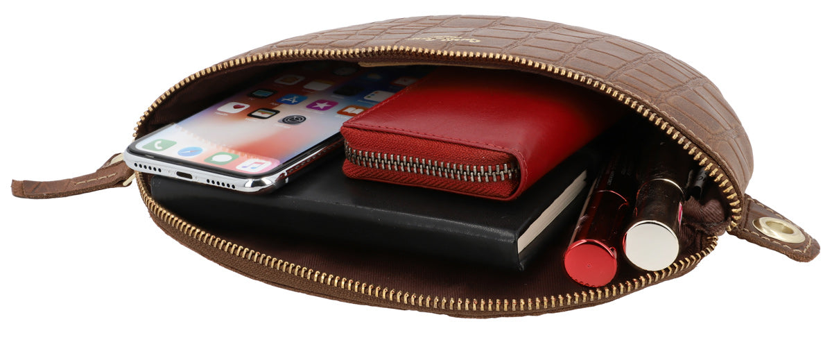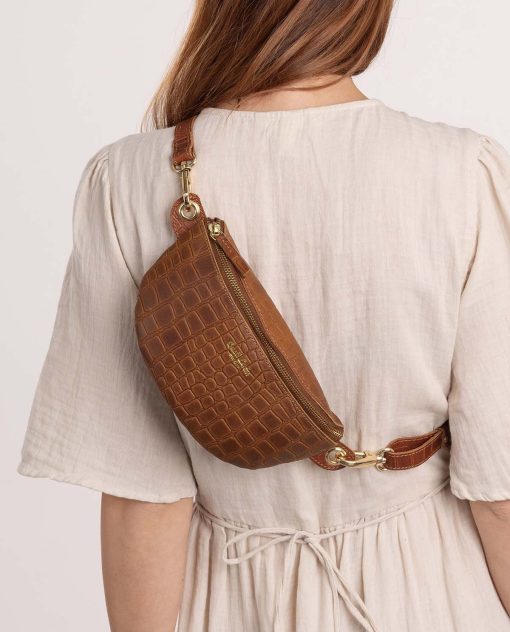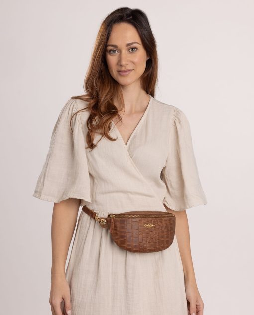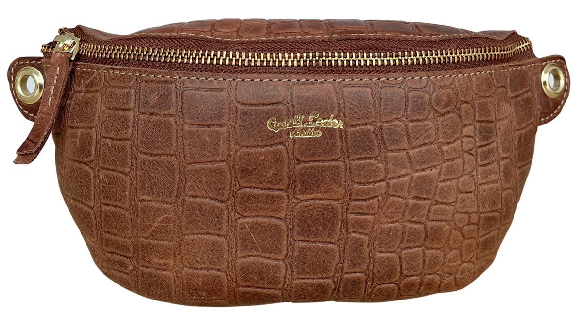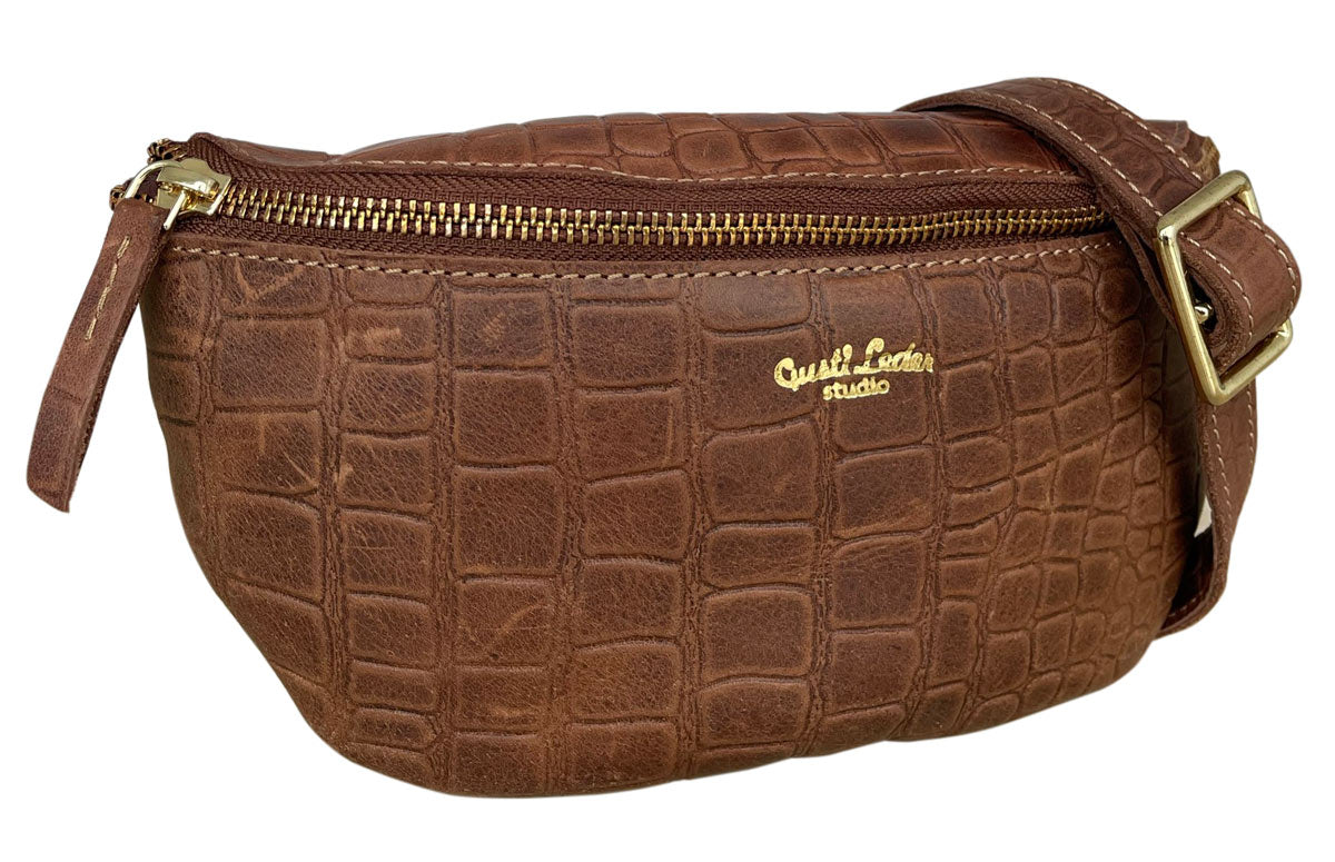 You just can’t get away from belt bags at the moment, they’re everywhere! Petite, practical, and close to your body, they’re the perfect accessory for your everyday life, at festivals, or even in bars and clubs. They also make the perfect gift! The high-quality tanned crocodile-skin-look cowhide leather gently hugs your body and adds an extra wow factor to any outfit. They’re the perfect solution if you don’t want to carry too much with you when you’re out and about. “Annabelle” won’t leave you hanging; her gold appliqués add a finishing touch to the soft cowhide leather and make sure that any outfit stands out.