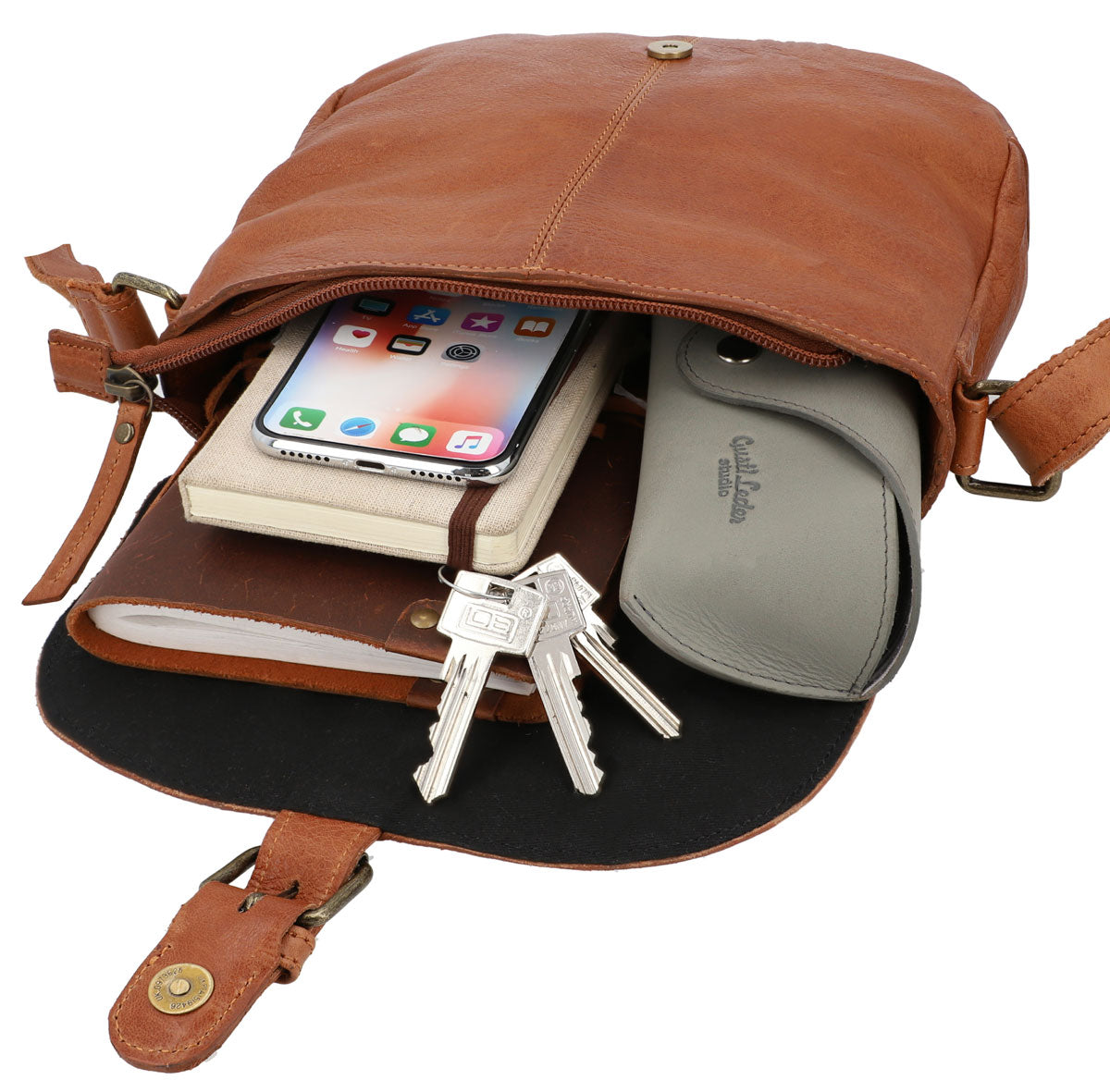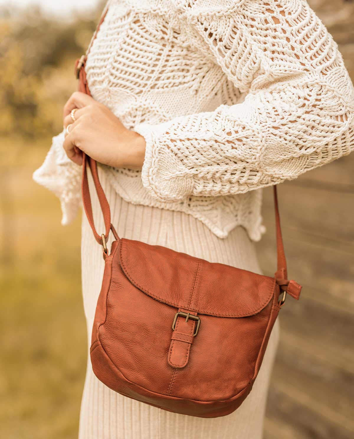 Our striking bag “Candice” has plenty of space for more than just your essentials. There’s space for your wallet, phone, keys, as well as an eBook or paperback. “Candice” has a zipped pocket on the back where you can keep your valuables safe from sticky fingers. The magnetic flap on the front of the bag hides a zip that prevents your belongings from getting lost when you’re on the move. This chic handbag is made from high-quality cowhide leather, making her super soft yet super sturdy. She can take on anything you throw at her. “Candice” is a down-to-earth chic vintage shoulder bag and the perfect companion when you’re exploring the city, grabbing coffee with your friends, or rambling through the countryside.