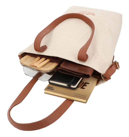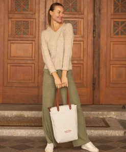 This fabric bag is the perfect companion for every day. With its modern design and robust leather handles, it offers not only style but also comfort and durability. The high-quality craftsmanship ensures that you will enjoy this bag for a long time.