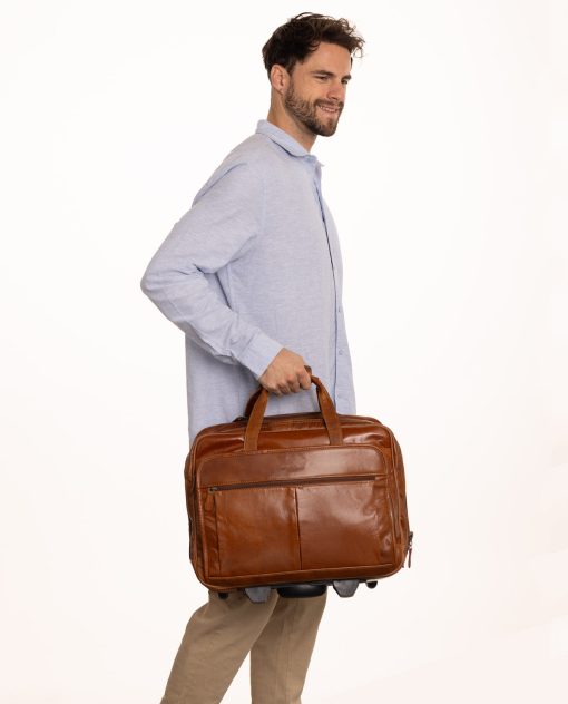 The included laptop sleeve provides space for laptops up to 15″ . Even large file folders will find plenty of room. Duncan’s three different main compartments make organizing your belongings very easy. When the trolley isn’t being pulled, the handle can be hidden in a dedicated pocket. For shorter journeys, the trolley has carrying straps to make lifting much easier.