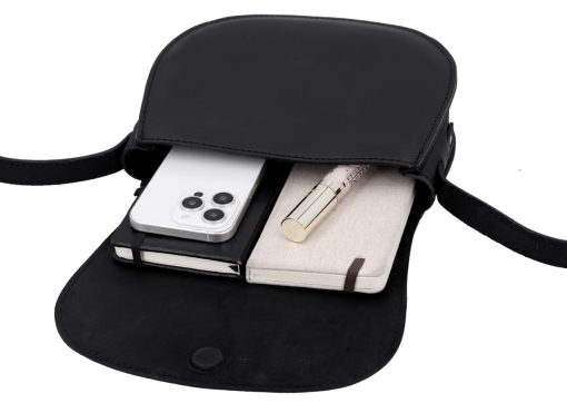 This high-quality cowhide leather shoulder bag has a spacious main compartment, plenty of space for your essentials. Keep your purse, make up, keys, phone and headphones safe inside. “Elenor” is secured by an invisible magnetic closure, so you won’t lose anything when you’re on the go. Throw her over your shoulder and off you go!