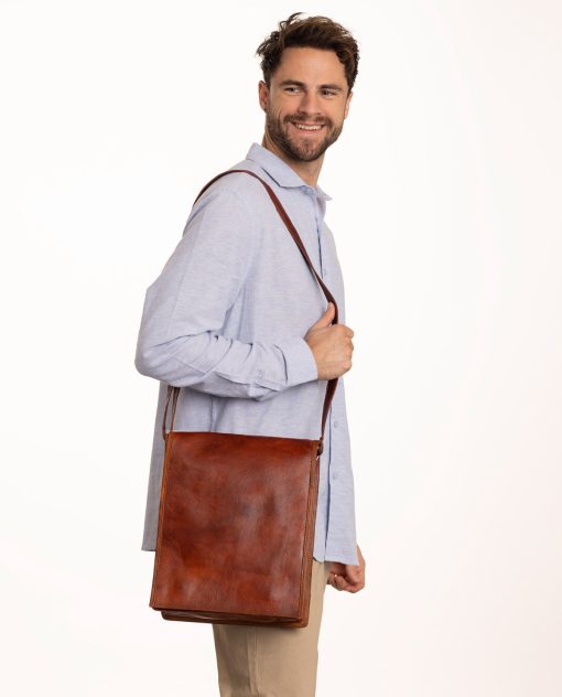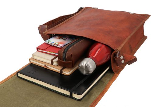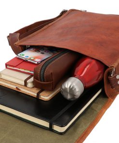 This functional bag is made of high-quality processed goatskin leather and can hold up to 8 litres. There’s plenty of space in the main compartment for your 11-inch devices, notebook, A4 documents, wallet and more. There are 2 extra pockets inside where you can keep your smaller belongings, like your headphones or keys, safe. The flap over has two magnetic buttons which stop your things from being lost when you’re on the go. You’ll be ready for anything with our “Finn” by your side.