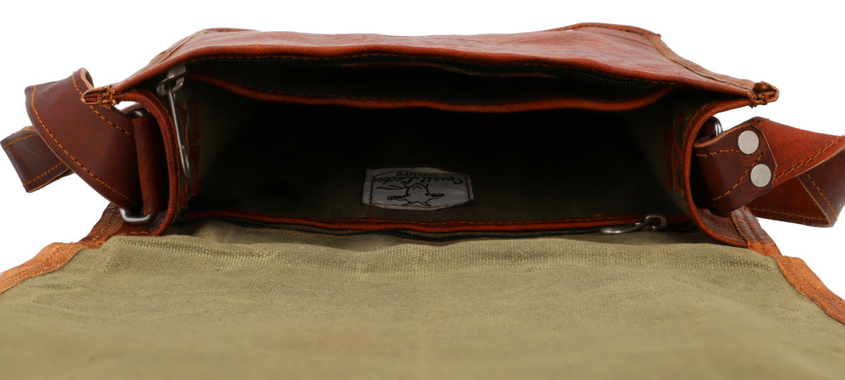 Are you ready for what the day may throw at you? You certainly will be with our chic satchel “Finn” by your side. Striking, classic and comfortable, our “Finn” is made of high-quality tanned goatskin leather. This charming vintage bag will win you over with its simplicity and comfort.