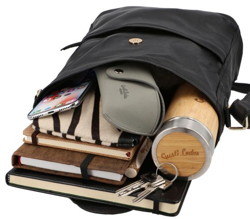 The main compartment in this shoulder bag is secured using a sturdy zip, so none of your belongings can go missing. “Jacqueline” has an extra tab that’s secured with a magnetic popper. So, you’ll have plenty of space for your water bottle, purse, notebooks, keys, and makeup. There’s an extra zipped pocket on the front of the bag where you can keep your phone, headphones, or gum.