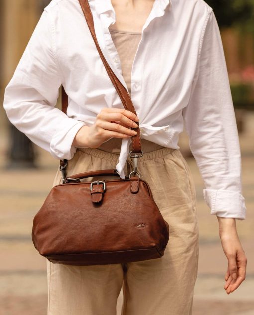 For fans of classic doctor and midwife bags, “Lillith” is an absolute must-have! It reinterprets this unique look and combines it with the size of a compact handbag. This makes the striking vintage model made of goat leather quickly become the ideal companion for your everyday life – whether for a quick shopping trip, a city stroll with friends, on vacation, or as a stylish going-out bag. Inspired by the urban Berlin city flair, “Lillith” combines style and functionality.