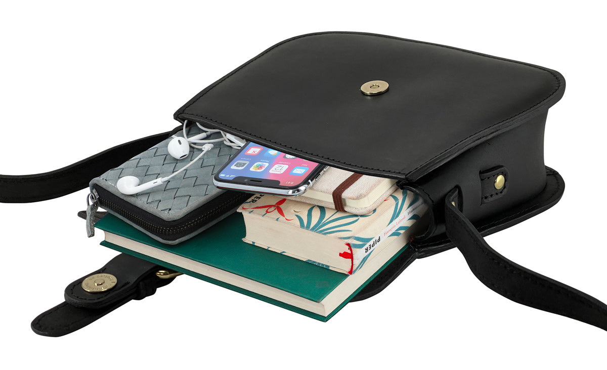 The soft yet sturdy buffalo leather used to create this spacious shoulder bag is simply divine, there’s more than enough space inside for your purse, keys, phone, and notebook. No matter if you’re whizzing through the city or watching the sunrise after a night on the town: “Linda” won’t let you down. Her gold buckle-style magnet closure makes sure your valuable stay safe and secure.