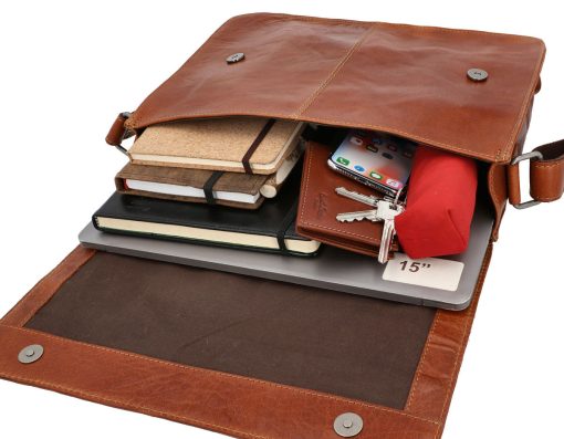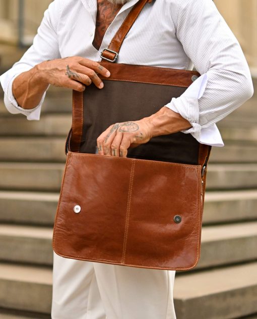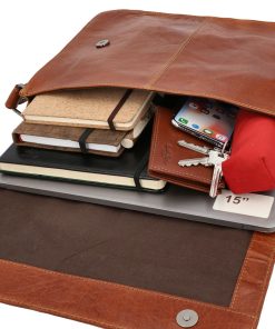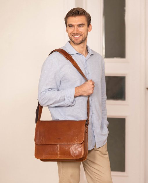 This satchel has a spacious main compartment, there’s plenty of space for 15-inch laptops, A4-size notebooks, as well as your books, pencil case, magazines, and more. “Pharell” has two magnets on the front of the bag that make sure everything stays put when you’re on the go. The rustic stitching on the front of the bag enhances “Pharell’s” natural charming look. All of your things are protected from dust and moisture inside this bag. This stylish satchel also has an additional zipped pocket for your important documents. The adjustable strap can be lengthened or shortened to suit your individual preference. The vegetable-tanned leather is discreet and complements any look.