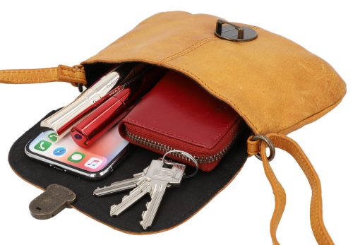 Do you want to go out but don’t want to take a big bag with you? Have you met our “Rona”? This petite leather handbag comes in a trendy vintage look and has plenty of space for your phone, keys, and purse! She’s the perfect companion when you want to take a short walk but don’t have any pockets. “Rona” looks extra chic when paired with a beautiful floral dress, but she also looks good with jeans and a nice jumper. This simple yet elegant bag complements any outfit, she’s stylish yet subtle.