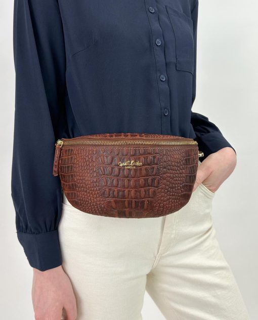 Confident, sophisticated, and sure to turn heads… That’s our “Rosamonde”! This trendy belt bag combines a sense of style with something new; a modern casual-chic element, that doesn’t need to fight for the spotlight. Thanks to its classic shape and trendy crocodile-skin-look finish, “Rosamonde” can be worn with any look and is sure to turn heads.