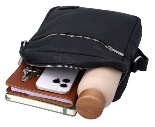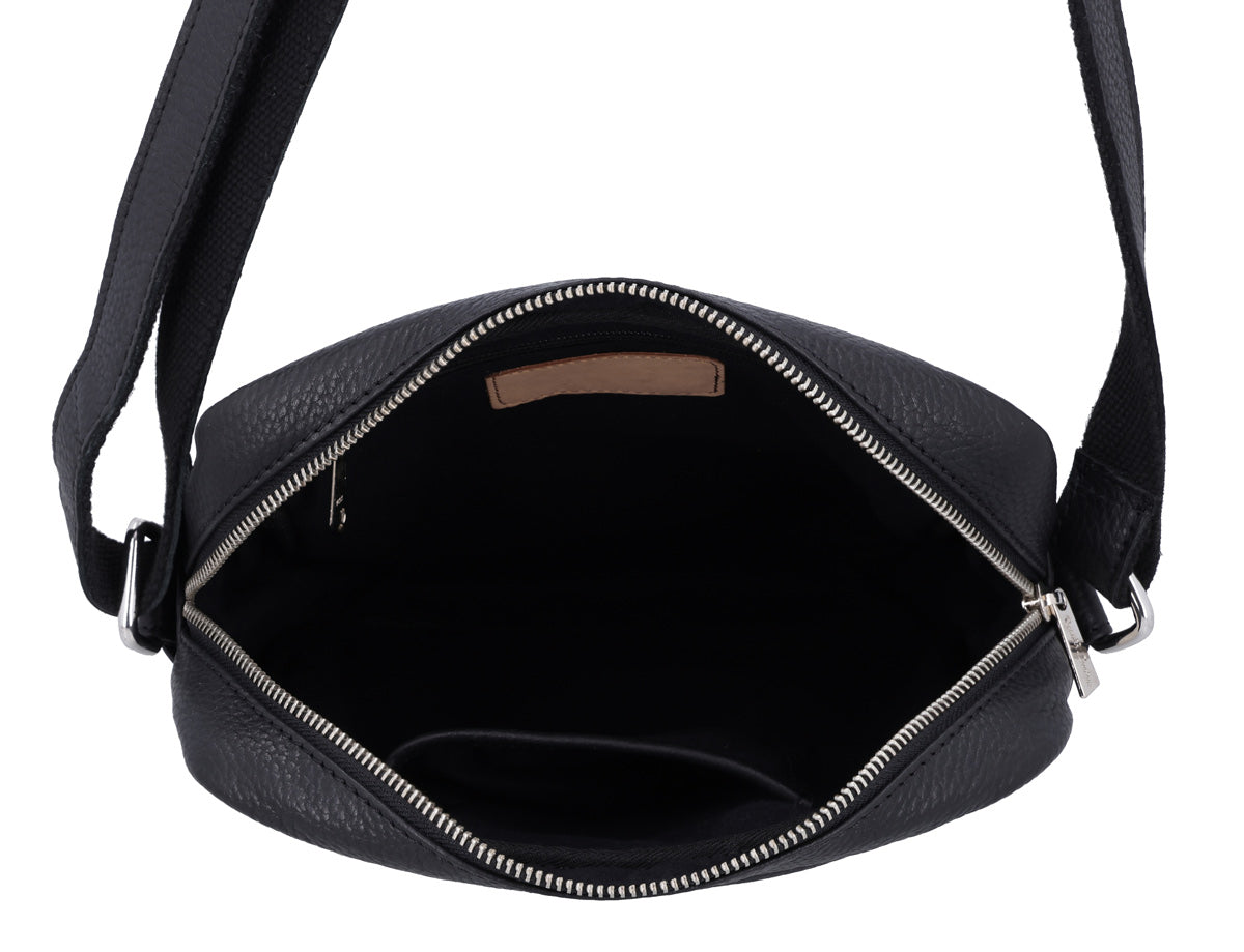 Die “Rosco” Umhängetasche aus hochwertigem schwarzen Leder ist der ideale Begleiter für jede Gelegenheit. Egal, ob im Alltag, beim Stadtbummel oder auf Reisen – mit dieser Tasche setzt Du immer auf ein zeitloses, elegantes Design. Sie bietet ausreichend Platz für Deine Essentials und überzeugt durch ihre schlichte, aber stilvolle Optik. Der verstellbare Schulterriemen sorgt für optimalen Tragekomfort und passt sich Deinen individuellen Bedürfnissen an, während der sichere Reißverschluss dafür sorgt, dass Deine Habseligkeiten immer gut geschützt sind.
