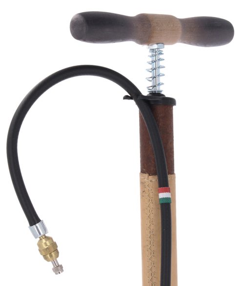 “Antonin A.” has a solid metal base and soft wooden handle, so you won’t work up a sweat when pumping up your tires. We’ve equipped this bike pump with a cowhide leather sleeve and a long rubber hose. You can use “Antonin A.” as a handy bike pump or decorate your home, he’ll be a reliable companion for years to come.
