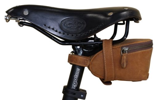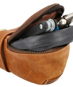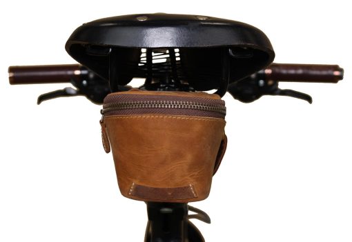 The zip and water-resistant lining ensure that your gear stays safe and dry when you’re out on the road. This saddle bag securely attaches under your saddle using leather straps and is secured to theseat stem using an additional strap. This ensures that “Gino B.” stays firmly in place without slipping – perfect for any route.