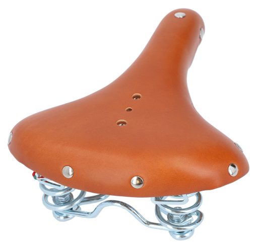 Thanks to its special shape with a narrow shaft and wide seat area, “Mark C.” optimally distributes body weight and ensures pressure relief – whether you’re riding sporty or relaxed. The metal springs guarantee additional comfort and effective shock absorption. The high-quality cowhide leather makes the saddle 100% breathable, so you don’t risk a sweaty bottom even on long distances. And unlike PVC saddles, “Mark C.” remains free of cracks and material fatigue even after years. Get on your bike and explore the world – with maximum riding fun from the very start!