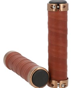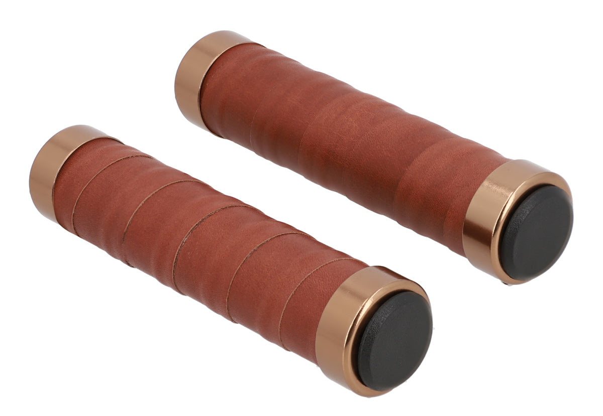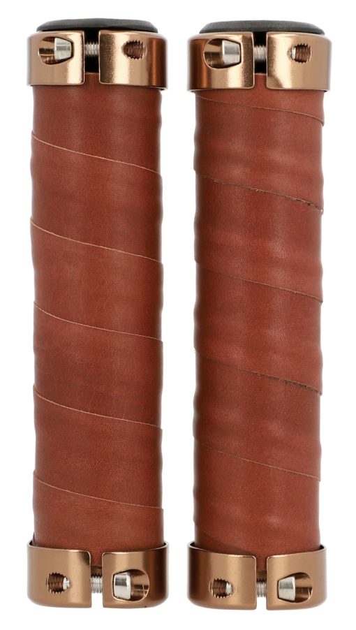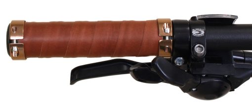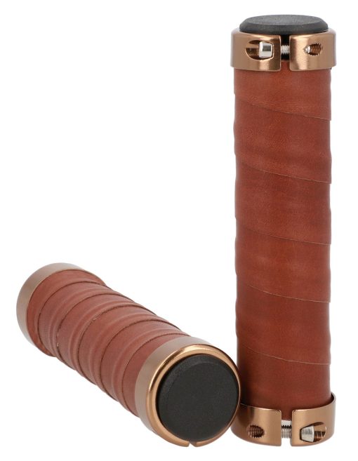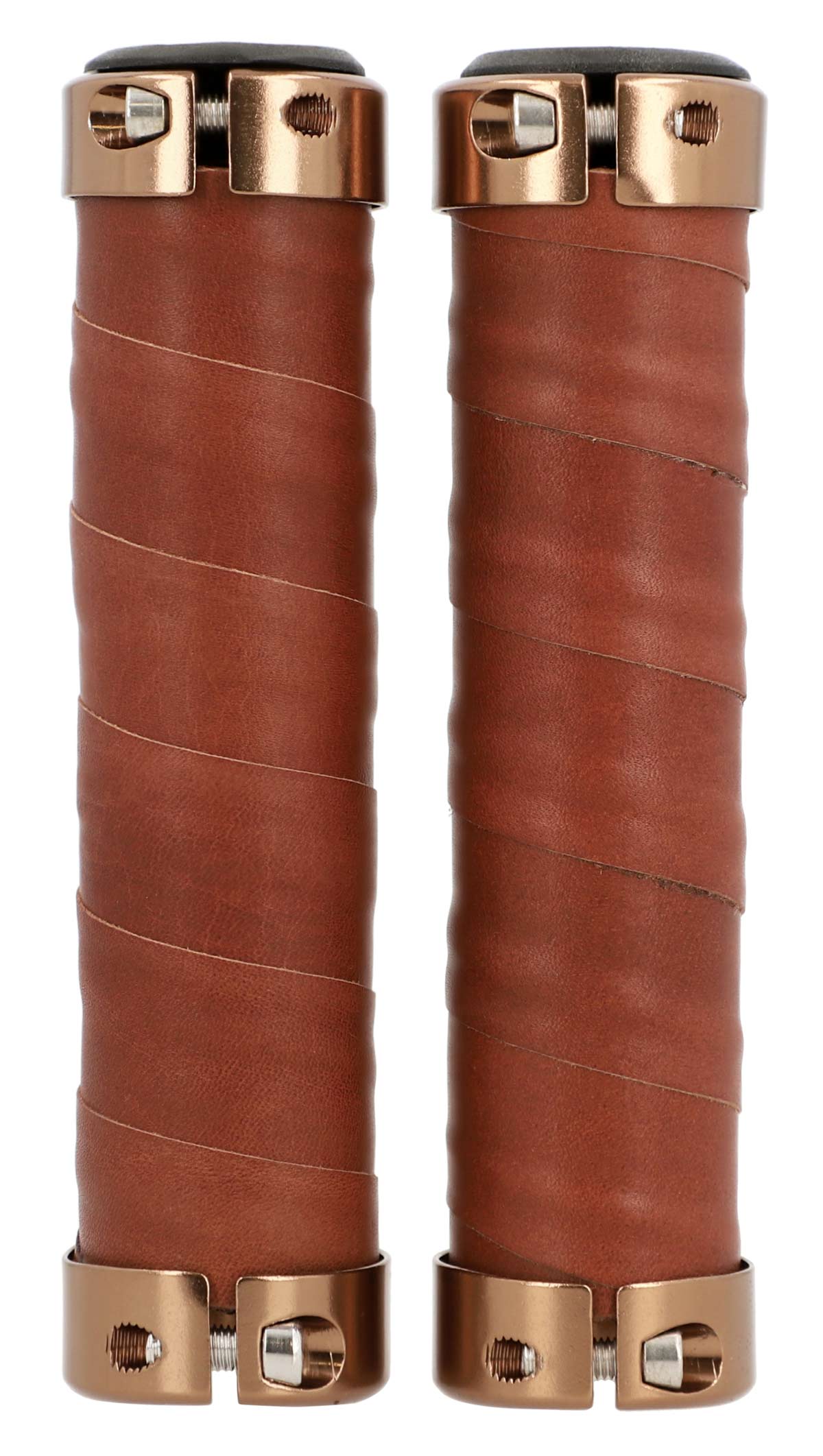 Our handlebar grips “Maximilian S.” will win you over with their striking mix of coloured aluminium and cowhide leather. They always provide you with consistency when you’re cycling, no matter the terrain. The leather used to make these handlebar grips means that they’re perfectly suited to the shape of your hands, and the springs provide protection from shock and movement when you’re cycling. Making it super easy to stay in control when you’re on a bike ride.